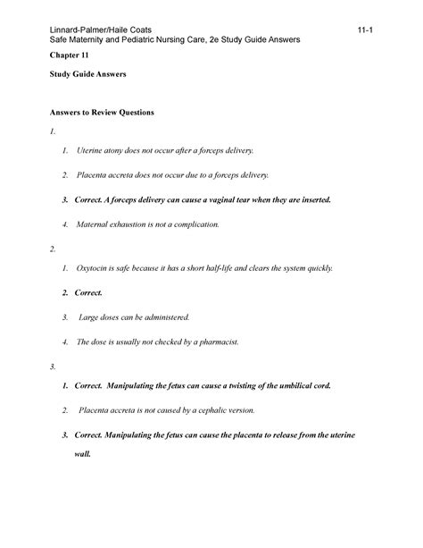 Free PDF Study Guide Answer Key Maternity And Pediatric PDF