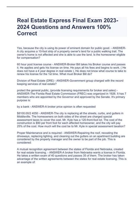 Read Online Florida Real Estate Express Final Exam Answers Reader Internet Archive